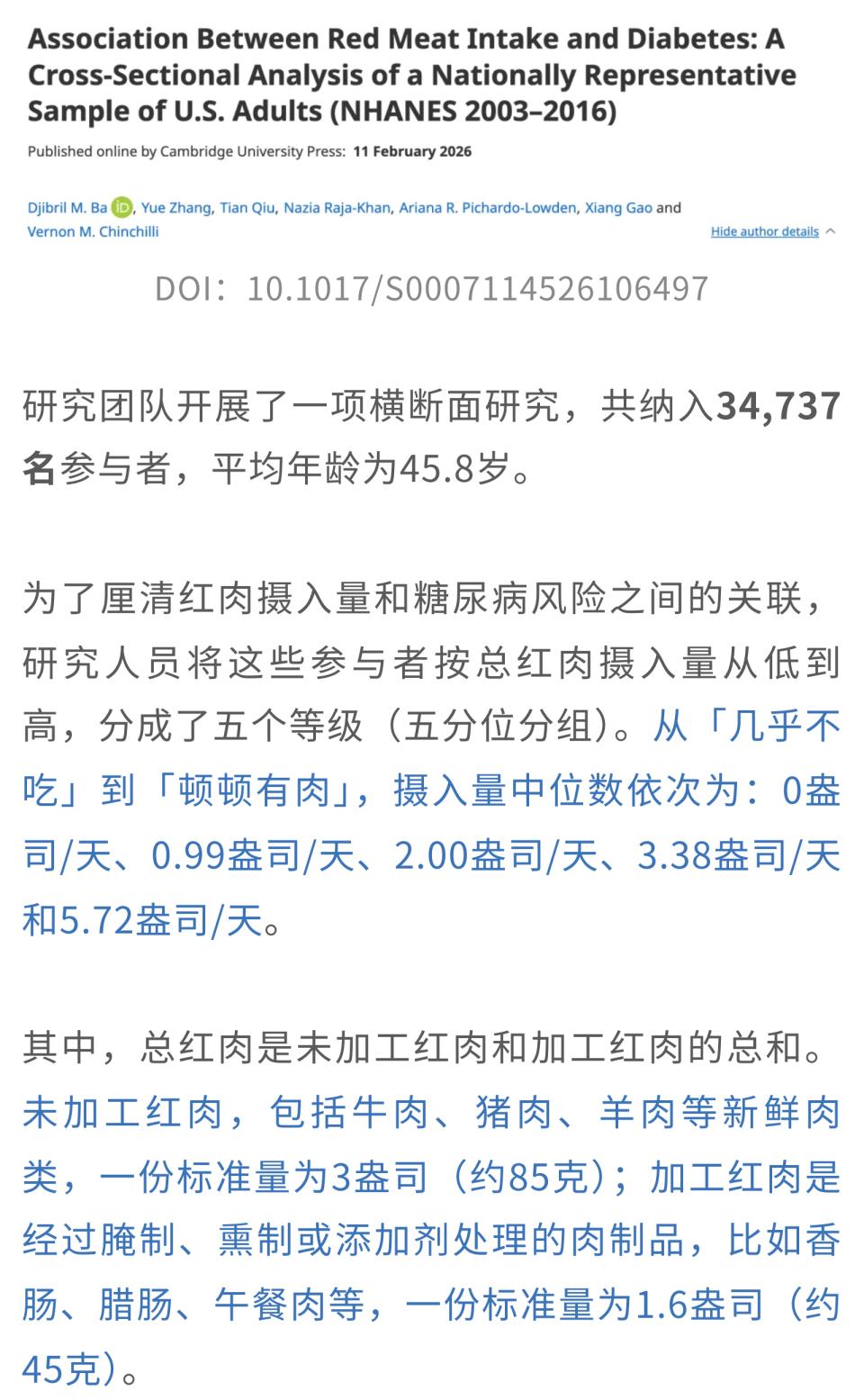 并且,随着红肉摄入量的增加,糖尿病风险呈现出显著的上升趋势。